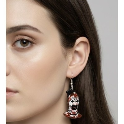 ♬ Doublesided Art the Clown/Terrifier Earrings. Handpainted bloody effect, acrylic paint sealed with clear glossy varnish. Made with care and good intentions. ♬