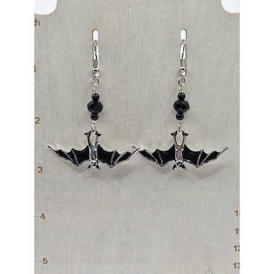 Bat Earrings Black Wings Handmade Handpainted Horror Spooky