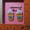 The Betsey Johnson Pumpkin Spice Latte Dangle Earrings in Goldtone are a festive and stylish accessory perfect for autumn and holiday seasons. Made with a combination of resin, glitter effect, metal, and crystal materials, these earrings feature a playful pumpkin spice latte shape in gold, orange, white, and red colors. The leverback closure and pavé setting style add a touch of elegance, while the round white/colorless main stone and glitter effect secondary stone make them sparkle. Signed by Betsey Johnson and measuring 2.7 inches in length, these dangle/drop earrings are a cute and chic addition to any outfit.
