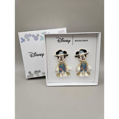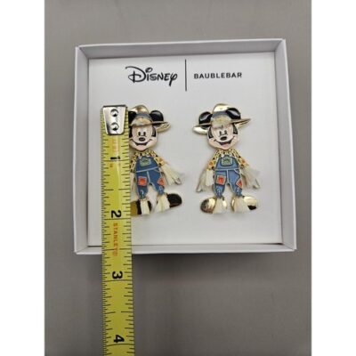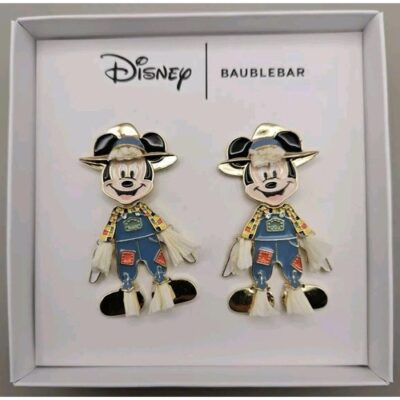 Add a touch of spooky fun to your outfit with these Disney x Baublebar Mickey Mouse Scarecrow Costume Dangle Earrings. These earrings are perfect for the fall season with their farm-inspired design. The multicolor earrings feature a dangle/drop style that complements any outfit, making them ideal for Halloween and Thanksgiving celebrations. The earrings come in a beautiful packaging, making them a great gift for any Disney lover. Get these amazing earrings now and add a touch of whimsy to your jewelry collection.