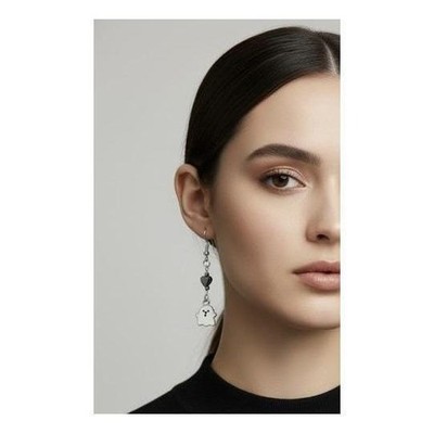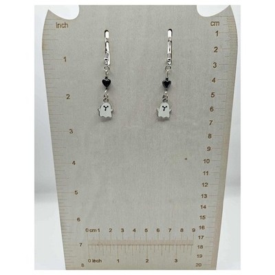 Keywords: Ghost earrings, Dangle earrings, Drop earrings, Silver tone earrings, Heart earrings, Halloween jewelry, Spooky earrings, Cute earrings, Charm earrings, Fashion earrings, Costume jewelry, Novelty earrings