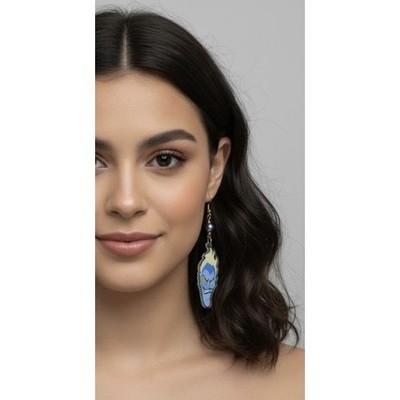 Hades Disney Inspired Flame Earrings Blue Fire Character Fan Art Dangle Handmade