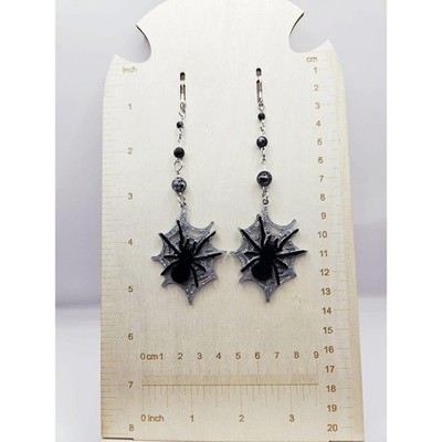 ♬Spooky silver toned drop dangle earrings, painted with silver metallic acrylic paint, protected with a glossy varnish. Beads are also splashed with a silver metallic as well. ♬
