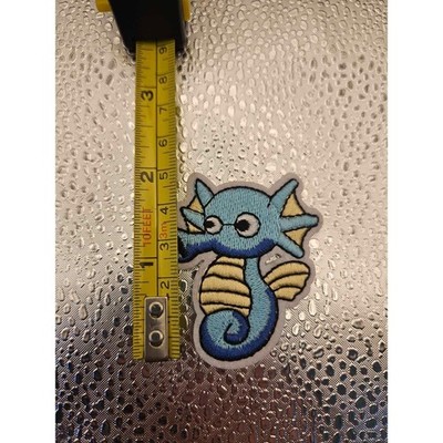 The Pokemon Horsea Iron/Sew On Patch is a small 1.5" x 1.5" cloth patch featuring the beloved Pokemon character Horsea. This patch can be easily ironed onto clothing or other fabrics, or sewn on for a more permanent attachment. Perfect for adding a touch of nostalgia and personality to any project, this patch is a must-have for any Pokemon fan or sewing enthusiast.