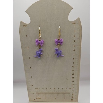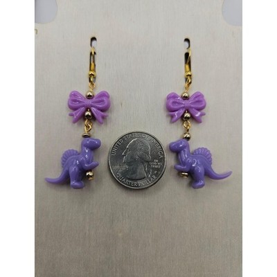 ♬Gold toned mismatched dinosaur bow cute earrings. :3 Made with good vibes and love, always. ♬