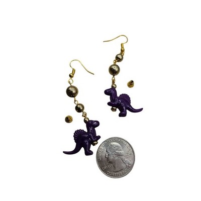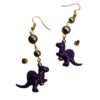 Purple Dinosaur Dangle Earrings Gold Tone Beads Fun Whimsical Jewelry