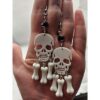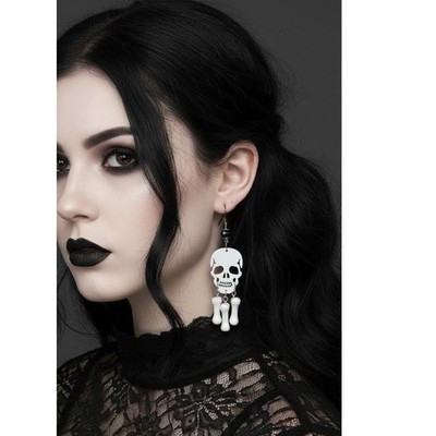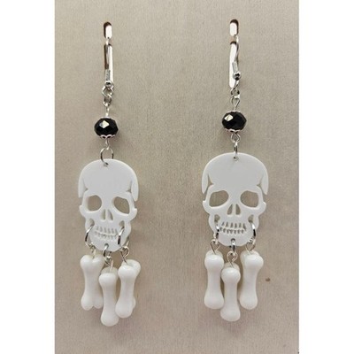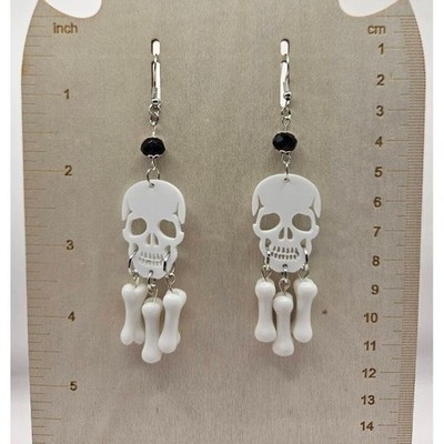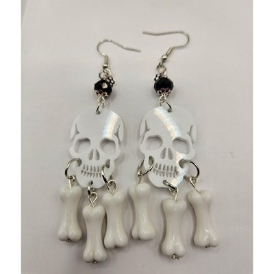 Keywords: Skull Earrings, Bone Earrings, Halloween Earrings, Dangle Earrings, Drop Earrings, Silver Tone, Gothic Jewelry, Punk Earrings, Alternative Fashion, Lever Back Earrings, Skull and Bones, White Earrings, Statement Earrings, Edgy Jewelry, Chandelier Style, Earrings Handmade, Beaded Earrings Handmade, Handmade Jewelry Earrings