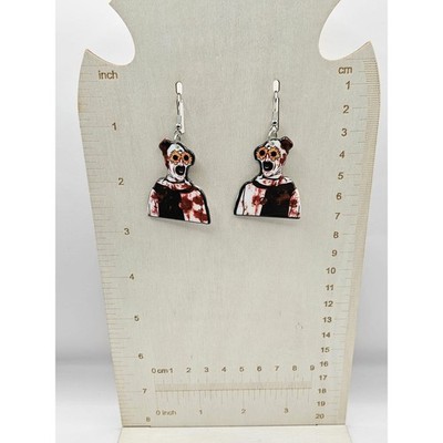 ♬ Art the Clown/Terrifier Earrings. Handpainted bloody effect, acrylic paint with a clear varnish on top. Made with care and good intentions. ♬